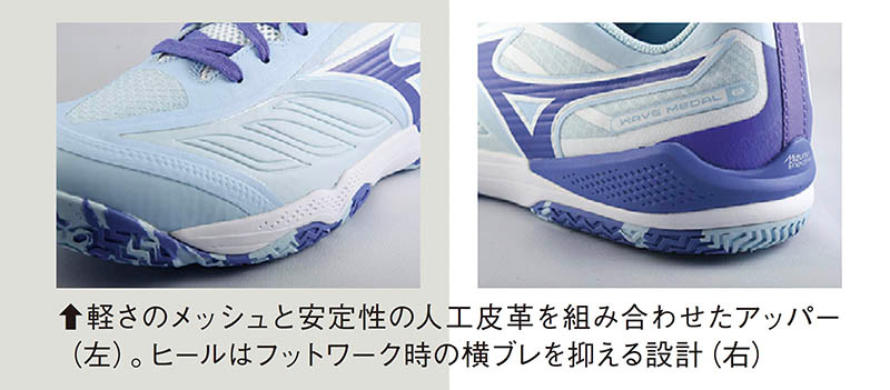 カラフルでポップなデザインも相まって、シューズに足を通す喜びが増し、プレーする楽しみを何倍にもしてくれる『ウエーブメダル8』。足幅が広い人のためにワイドモデルの『ウエーブメダル8 WIDE』も用意されている。